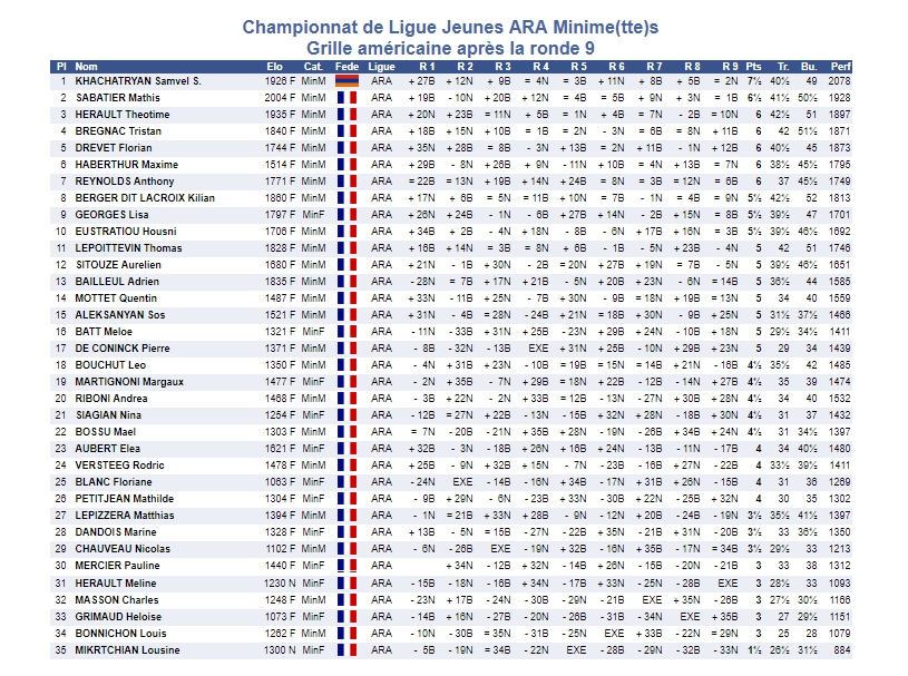 Sos ALEKSANYAN (MinM, 1521 Elo) - Grille américaine du tournoi des Minimes (Mixte)