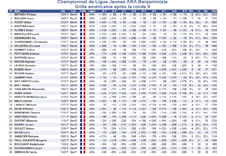 Anthony Vaur (BenM, 1430 Elo) - Grille américaine du tournoi des Benjamins