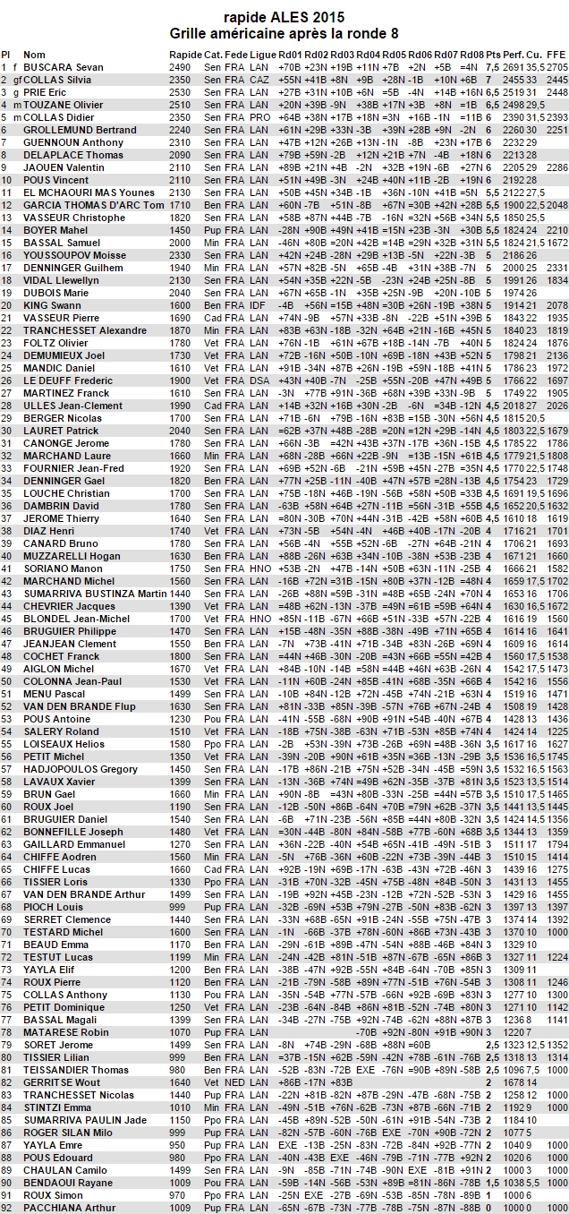 L'Échiquier du Grand Alès organisait ce dimanche lors du 4ème Festival des jeux de l'esprit de la ville, un tournoi de parties rapides de 8 rondes, jouées à la cadence de 2x20 minutes.