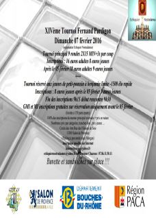 La 14ème édition du Trophée Fernand Pardigon, organisée par l'Échiquier Nostradamus, aura lieu le dimanche 7 février 2016 au Cercle des Arts de Salon-de-Provence (Rue des Fileuses de Soie - 13300 Salon-de-Provence).