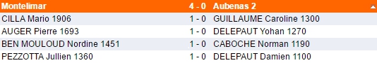 Dernière ligne droite avant la décision finale au classement, cette ronde s'est conclue par une large victoire de l'équipe 1 (3-0). La jeune équipe 2 s'est quant elle logiquement inclinée face aux expérimentés joueurs montiliens (4-0).