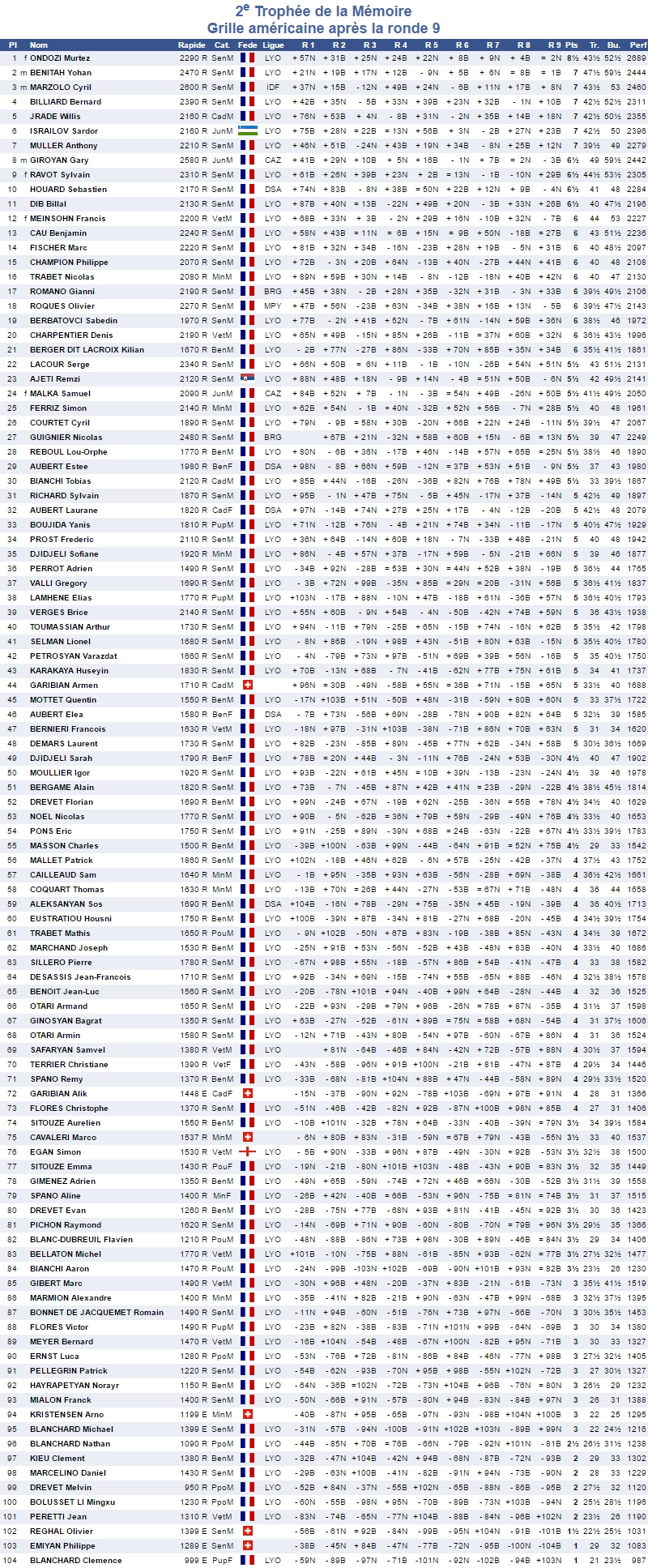 Le tournoi a quant à lui été remporté par le Maître FIDE Murtez Ondozi (2290 Elo) avec 8.5/9. Il est suivi par notre ami Yohan Benitah (2470 Elo) et par Cyril Marzolo (2600 Elo), tous deux comptant 7/9.