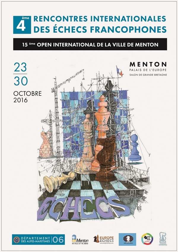 Le grand rendez-vous annuel échiquéen de la francophonie mondiale se tiendra du 23 au 30 octobre 2016 et sera jumelé cette année avec la 15ème édition de l'Open International de la ville de Menton.