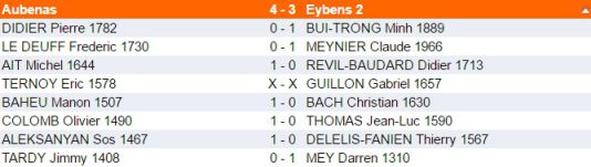 Jimmy justement va petit à petit perdre pied et se retrouvera finalement dans une finale de tours perdante (1 - 1). Michel de son côté va gagner une qualité et s'imposera dans la finale. Aubenas reprend ainsi l'avantage (2 - 1) !