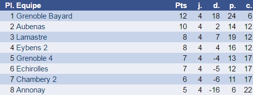 Notre équipe rencontrait cet après-midi celle d'Eybens, 3ème au classement général, qui, comme nous, compte 7 points.