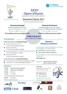 L'Open d'Aurec étant limité à 200 participants, il est vivement de vous inscrire à l'avance.