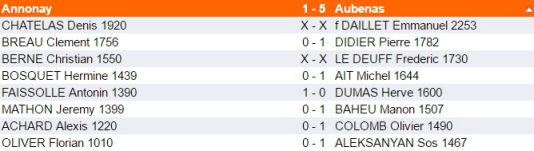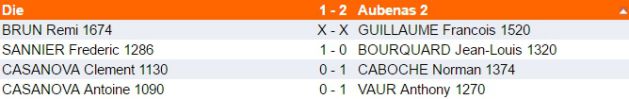 Sos a très vite pris l'avantage et va s'offrir une miniature en 16 coups (1 - 0 pour Aubenas). Olivier a également très vite dominé son adversaire en gagnant une puis deux pièces laissant ainsi présager une victoire facile.