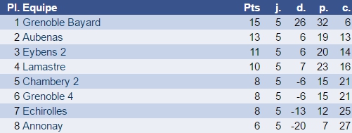Notre équipe rencontrait cet après-midi celle d'Annonay, 8ème au classement général. La rencontre avait lieu à Aubenas à Vaucanson, et l'enjeu pour nous était de conforter notre 2ème place.