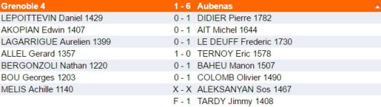 L'équipe de Grenoble ne comptait que 7 joueurs nous offrant ainsi un point par forfait au dernier échiquier. Nos Elo étaient tous supérieurs mais encore faut-il gagner les parties sur l'échiquier.