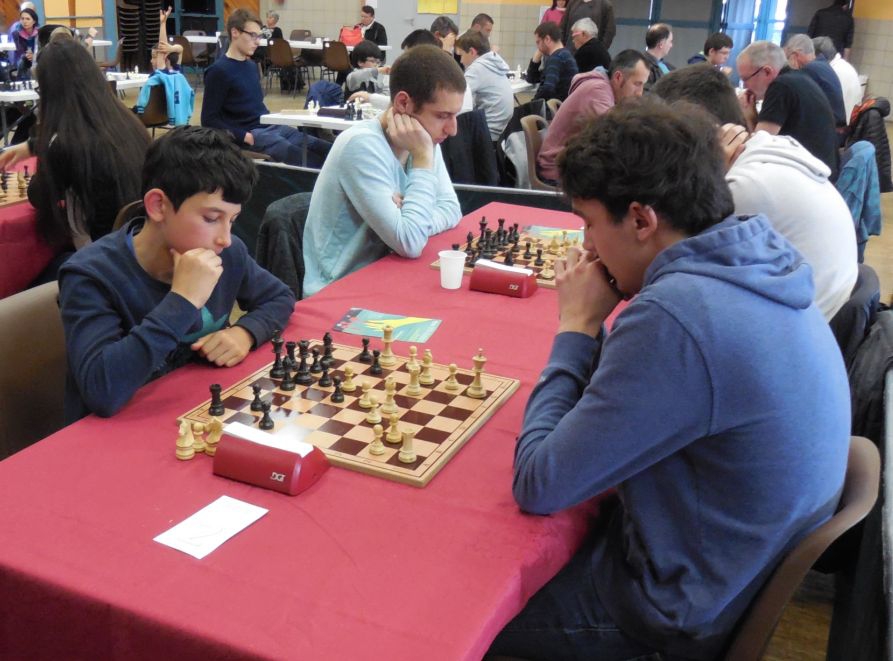 A la mi-journée après 3 rondes, Sos et Frédéric se pointaient dans le groupe de tête avec 3pts/3, puis Olivier avec 2/3, suivi de Manon et Camille avec 1/3.Mais à la reprise en tout début d'après midi c'est Sos qui remettait la pression avec un sans faute à 4/4, ce qui lui permettait de rencontrer le favori du tournoi Anthony Muller (SenM, 2400 Elo). Après avoir résisté jusqu'au bout, Sos s'inclinera contre les deux premiers du tournoi mais gagnera encore l'après-midi pour finir 5ème avec 5/7, premier de sa catégorie et une belle performance à 2014 Elo !