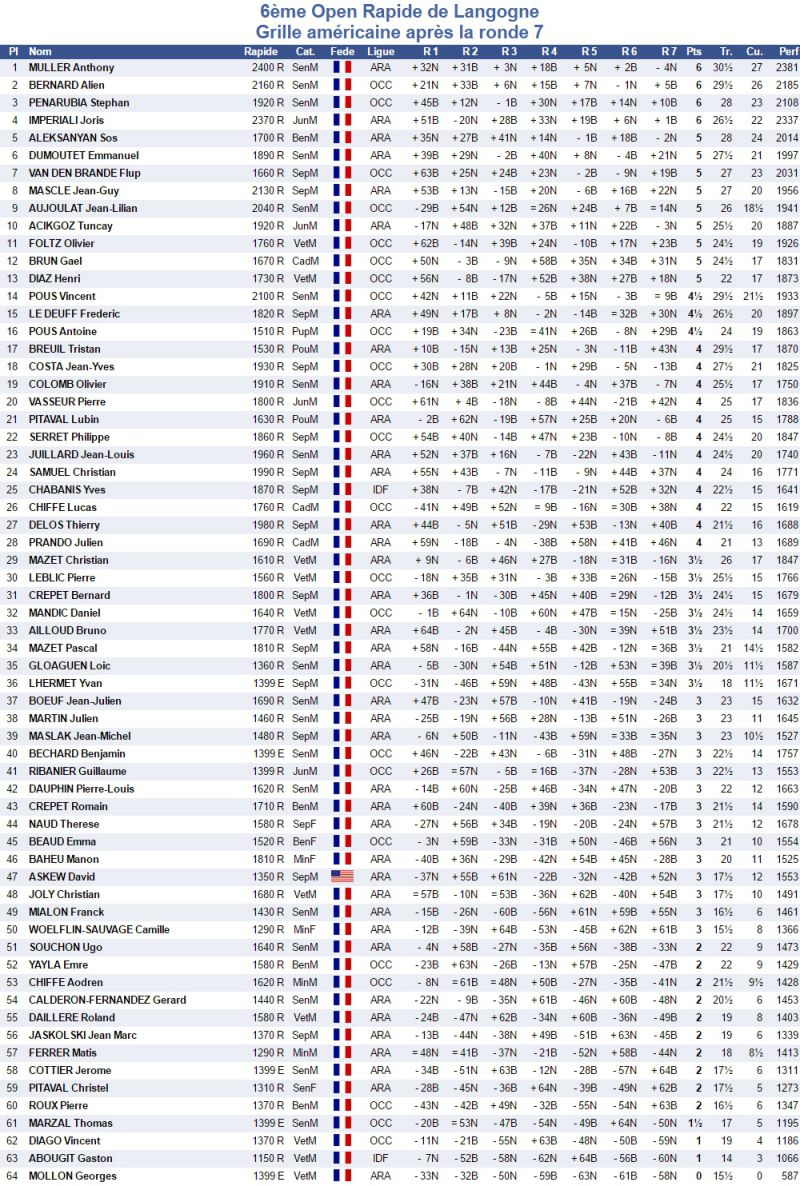 La 6ème édition du semi rapide de Langogne promettait d'être à nouveau un succès avec cette année pas moins de 64 joueurs dans le tournoi principal, et 30 joueurs dans le tournoi jeunes. Notre club affichait présent avec Sos Aleksanyan (BenM, 1700 Elo), Manon Baheu (MinF, 1810 Elo), Camille Woelflin-Sauvage (MinF, 1290 Elo), Olivier Colomb (SenM, 1910) et Frédéric Le Deuff (VetM, 1820 Elo) prêts à en découdre.