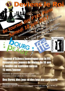 L'Échiquier Romanais-Péageois organisera le samedi 10 juin 2017 son 6ème Tournoi des P'tits Pions.
