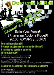 L'Échiquier Romanais organisera le samedi 14 juin 2014 son 3ème Tournoi des P'tits Pions.