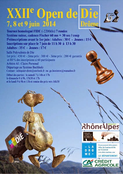L'Échiquier Diois organisera son XXIIème Open d'échecs ouvert aux moins de 2200 Elo les 7, 8 et 9 juin prochain.