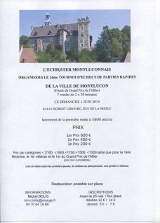 L'Échiquier Montluçonnais organisera le 1er juin 2014 le 2ème tournoi de parties rapides de la ville de Montluçon.