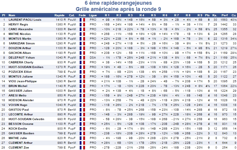 Se tenait ce dimanche 22 juin dans l'Espace Alphonse Daudet de la ville d'Orange le 6ème Rapide Jeunes d'Orange. Il s'agissait d'un tournoi de 9 rondes jouées à la cadence de 15 min. + 3 sec./coup.