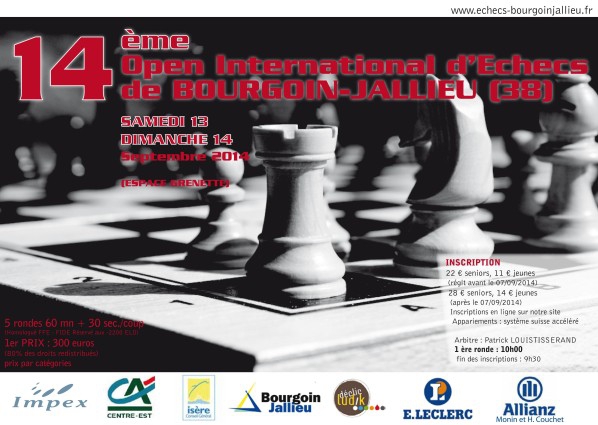 La Dame blanche de Bourgoin-Jallieu organisera les samedi 13 et dimanche 14 septembre prochain son 14ème Open FIDE.