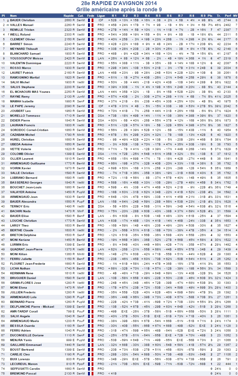 S'agissant du haut du classement, c'est le Grand Maître International, Christian Bauer (2660 Elo), tout récent vainqueur du 1er Open Rapide d'Aubenas, qui s'impose facilement avec 8.5/9 devant le Maître International, Manuel Valles (2260 Elo) et Tristan Rémille (2320 Elo).