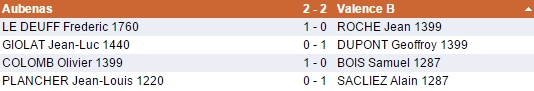 La prochaine ronde aura lieu le dimanche 14 décembre prochain à Aubenas, et verra croiser la route de l'équipe B de Lamastre, actuelle lanterne rouge du groupe.