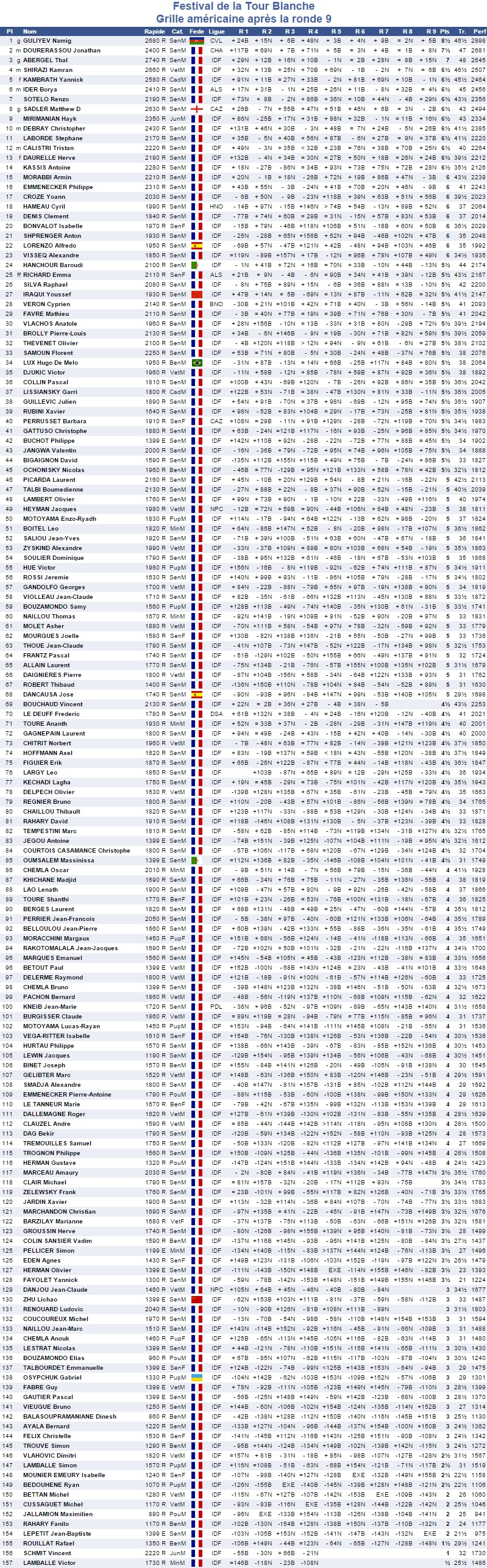 Précisons tout de même que c'est le Grand Maître international azéri Namig Guliyev (2680 Elo) qui l'a emporté au terme des 9 rondes sur le score de 8.5/9. Jonathan Dourerassou (2400 Elo) et Thal Abergel (2740 Elo) complètent quant à eux le podium avec respectivement 7.5/9 et 7/9.
