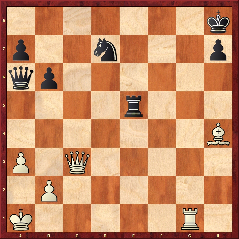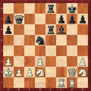 Ainsi, la Dc3 prend la Te5 et donne échec, les Noirs sont obligés de reprendre du Cavalier afin de parer celui-ci. Le Fou vient alors donner échec en f6 et mater !