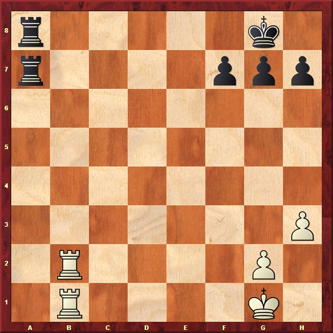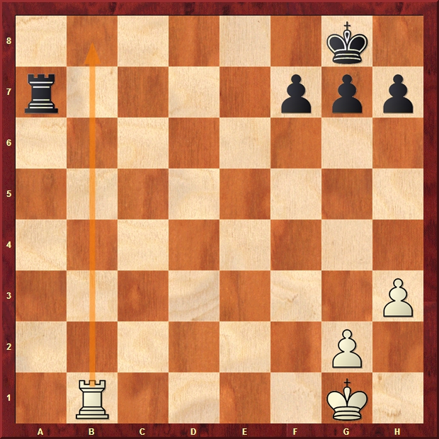 Par exemple, sur le diagramme suivant si l'on amène la Tour en b8, les Blancs matent en un coup. Il y a alors "mat du couloir".