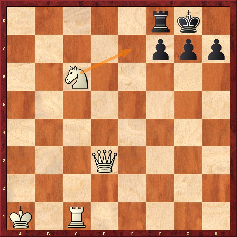 Ainsi, sur le diagramme suivant le Cavalier fait échec en e7 amenant le Roi sur la case h8. La Dame se sacrifie ensuite en h7 ! Le Roir noir est alors obligé de prendre cette dernière et ne peut empêcher la Tour de mater en h1.