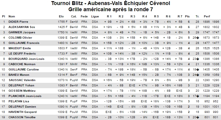 Les résultats de l'Aubenas-Vals Échiquier Cévenol en tournoi