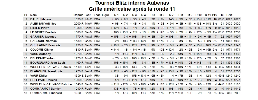 Les résultats de l'Aubenas-Vals Échiquier Cévenol en tournoi