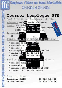 Championnat Drôme-Ardèche d'échecs des Jeunes 2014 (22 - 23 novembre 2014)