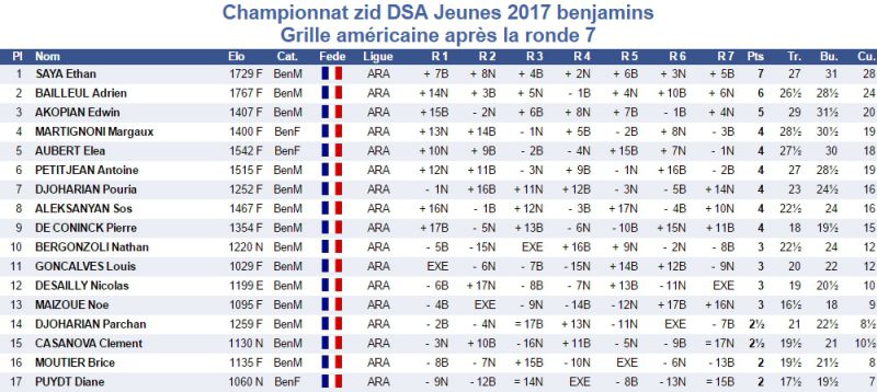 Sos Aleksanyan (BenM, 1467 Elo) - Grille américaine du tournoi des Benjamins